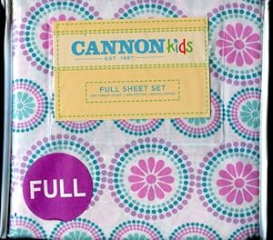 Cannon Kids ** Full Sheet Set ** Wonderland / Flowers & Dots ** 2 Sheets & 2 Pillow Cases Feature